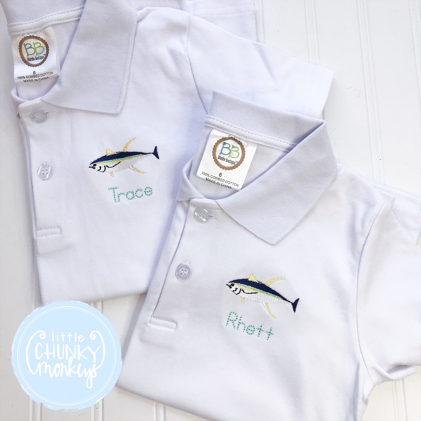 Boy Polo Shirt - Embroidered Fish
